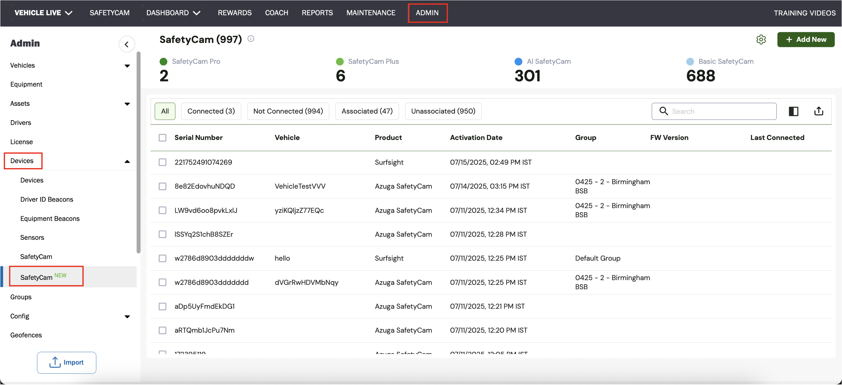 Within the Fleet Web platform, the Basic SafetyCam can be associated through both the SafetyCam page and the Vehicles page, providing users with greater flexibility and control.