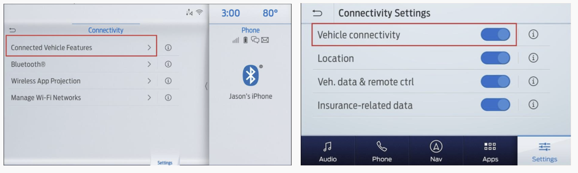 Enable Connectivity Settings in the Vehicle(s)