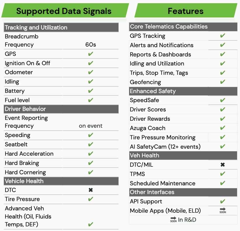 Azuga will confirm which vehicles are compatible with the embedded hardware, and provide any additional instructions needed for activation (i.e. GM OnStar).
