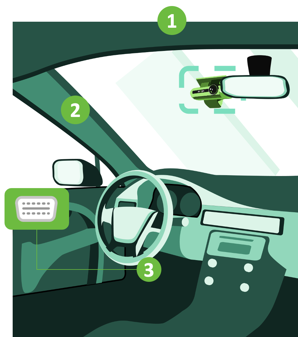 - Proper positioning is crucial to ensure clear visibility of the road and the driver, as well as accurate monitoring and reliable event triggering.