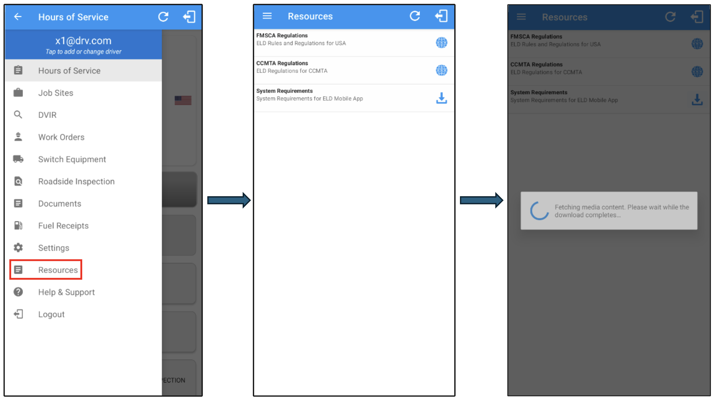 The mobile app has now been enhanced to allow drivers to view and download these documents directly from the ELD App under Settings > Resources. The documents and links are uploaded by Admins via the ELD portal and are now accessible to all drivers and admins within the same organization.