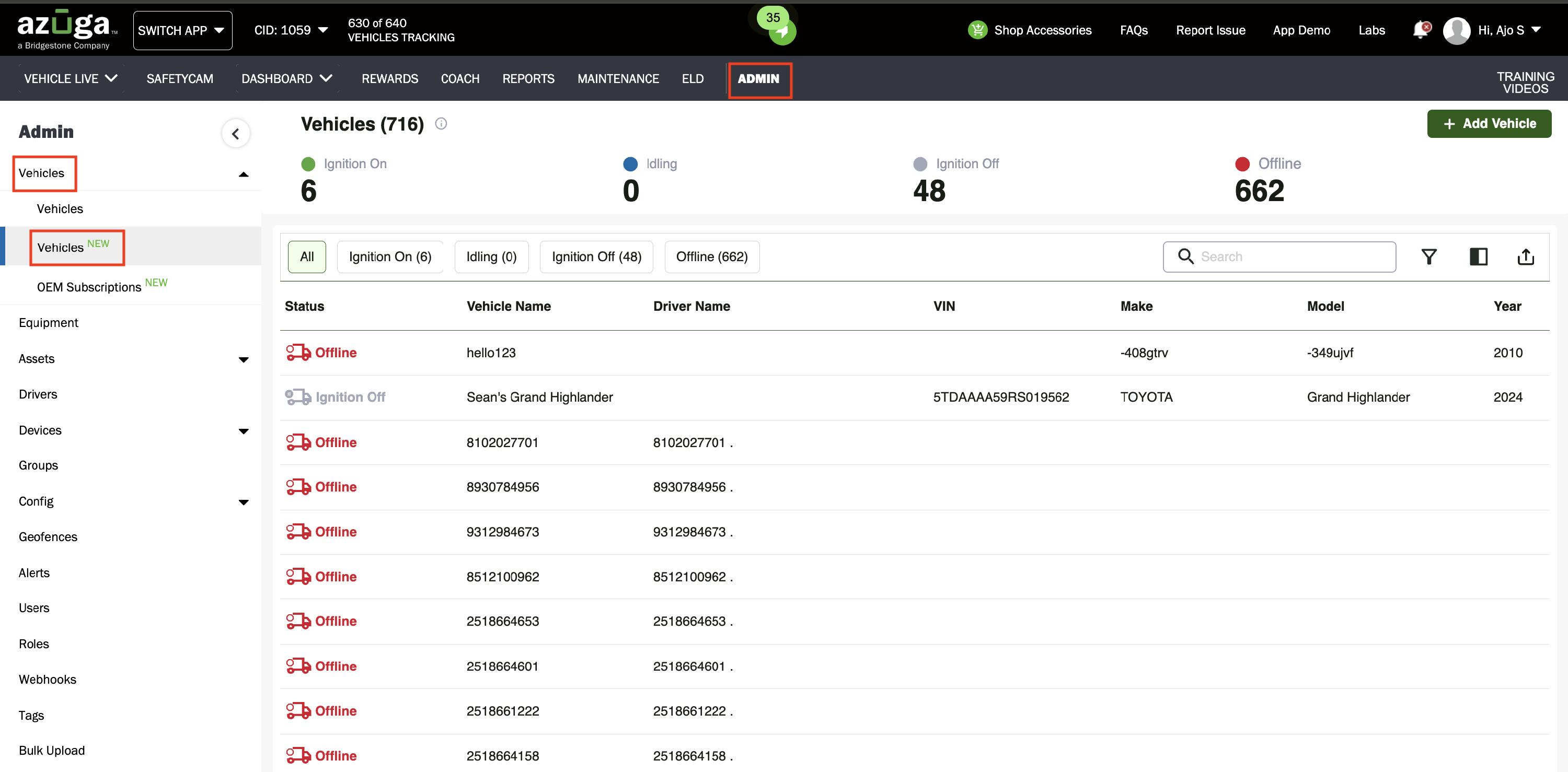 - The new Vehicle Admin Page is here, bringing a modern, faster, and more intuitive experience to fleet management. Designed with performance and clarity in mind, this redesigned interface offers real-time visibility into vehicle status, smarter workflows for adding and organizing vehicles, and enhanced search and filtering options. Easily track ignition states, monitor active or offline vehicles, and manage your entire fleet from one streamlined dashboard.