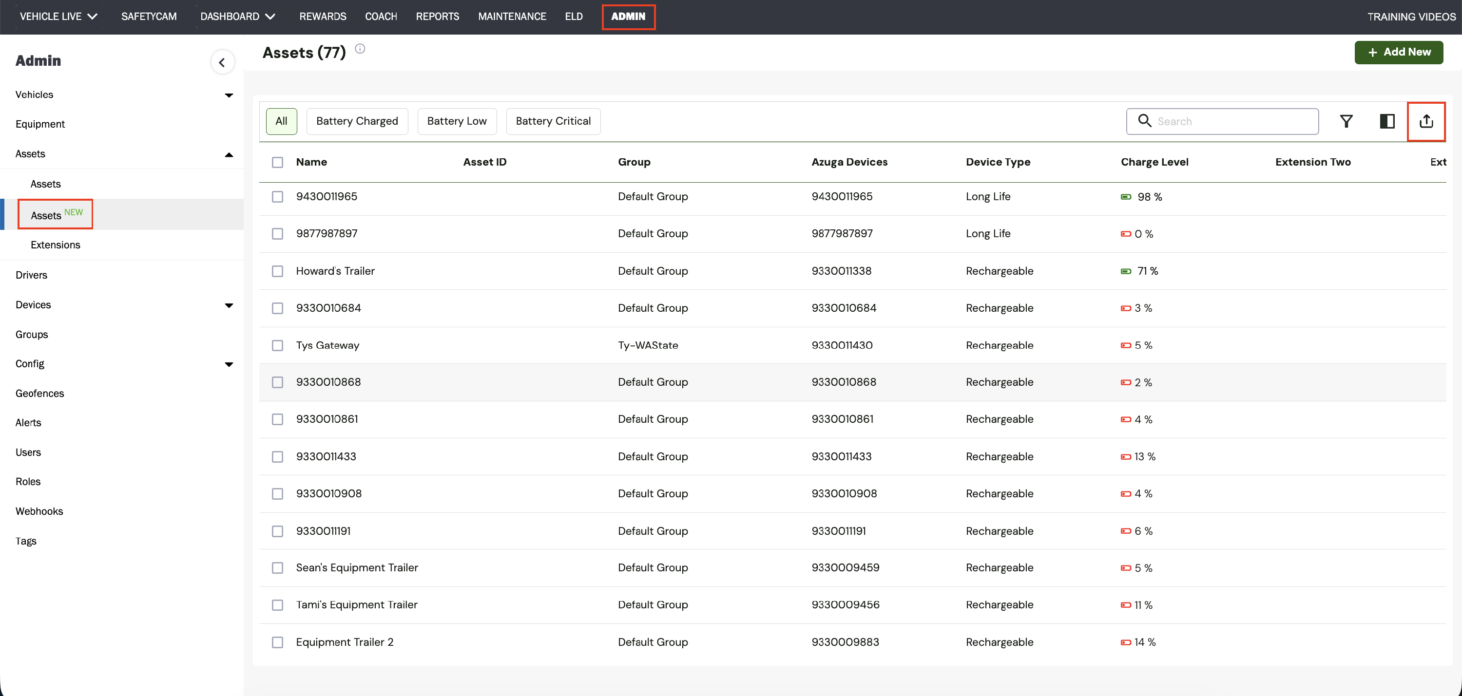The export button has been newly added to the Assets table. You can now export data directly from Admin > Assets > Assets New for easier reporting and sharing.