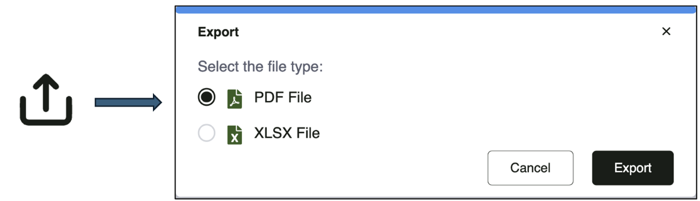 Export Option: Export table data as an XLSX file for reporting or record-keeping.