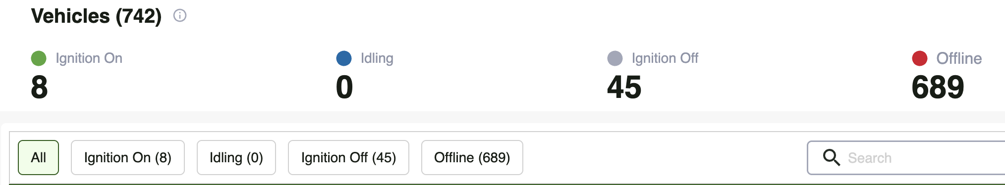 Quick Filters: Use the available filters to locate specific vehicles based on their status quickly: