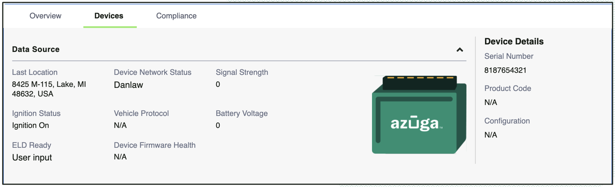 Device Serial Number – Serial number of the tracking device installed in the vehicle.