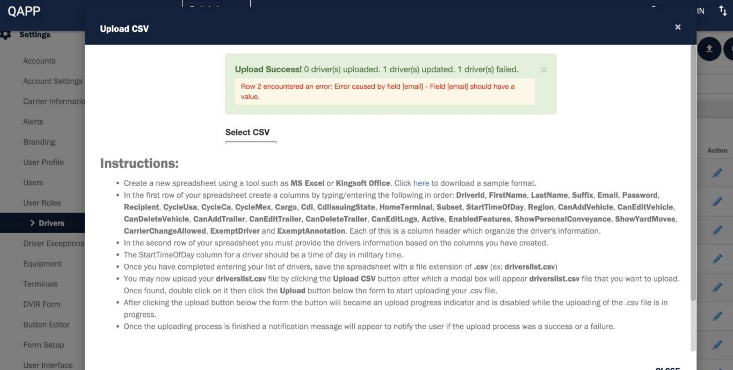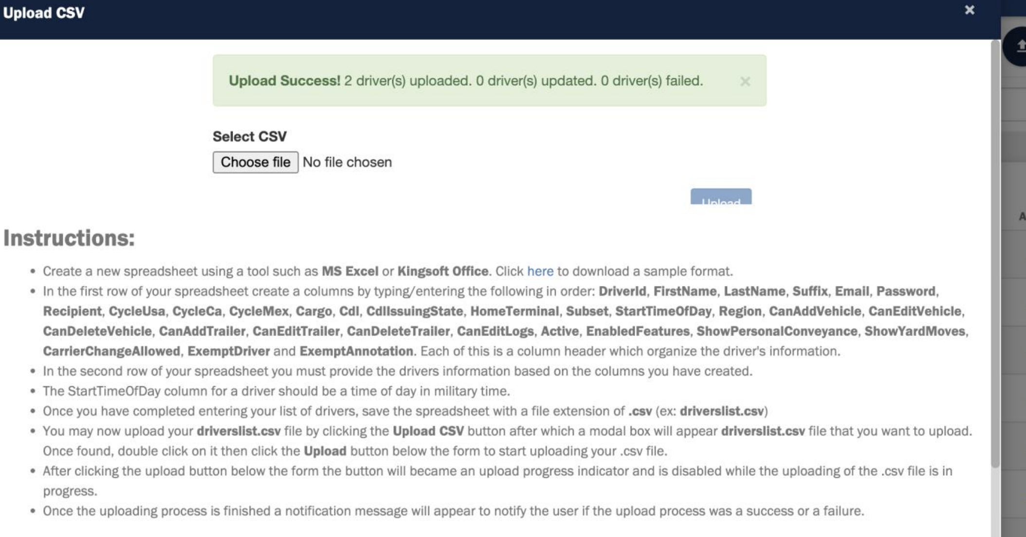 With this update, the system now clearly shows the number of failed driver records and updated driver count helping administrators quickly review errors, take corrective action, and ensure successful bulk uploads with better visibility and control.