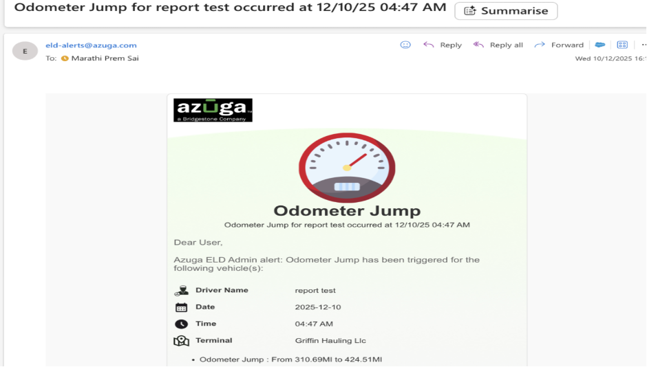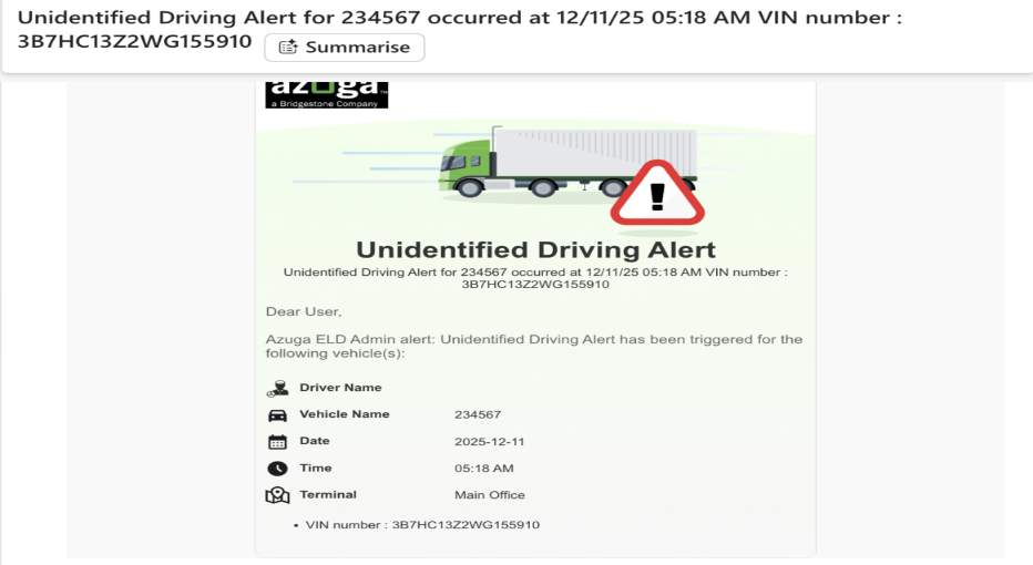 With this update, ELD alert emails now clearly include the associated terminal information, allowing customers to immediately identify the relevant terminal directly from the email. Additionally, the trailer icon has been replaced with a more appropriate icon to better represent the alert context.