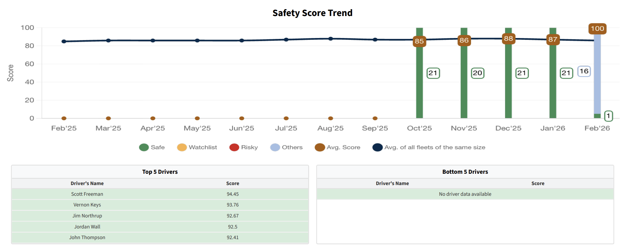 - All score trend graphs, including Safety, Speeding, Braking, Acceleration, and Idling, now represent: