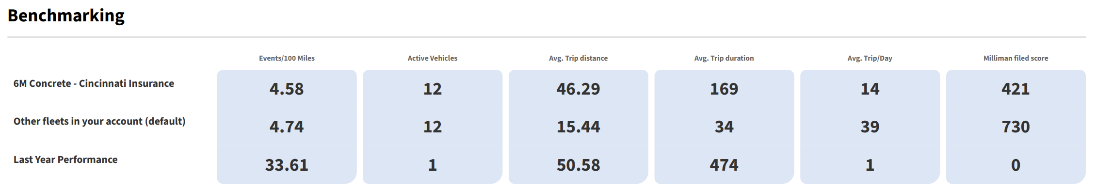 - Benchmarking now includes additional metrics beyond Events per 100 Miles.