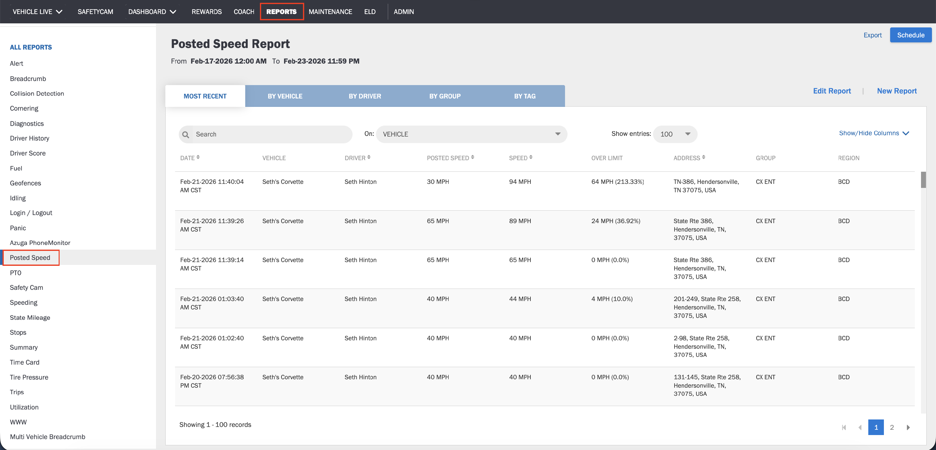 - Select Posted Speed Report